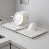 Juego de 2 Alfombrillas de Piedra para Esquina de Cocina, Alfombrillas de Diatomita, Escurridor de Vajilla con Patas de Soporte y Embalaje en Caja